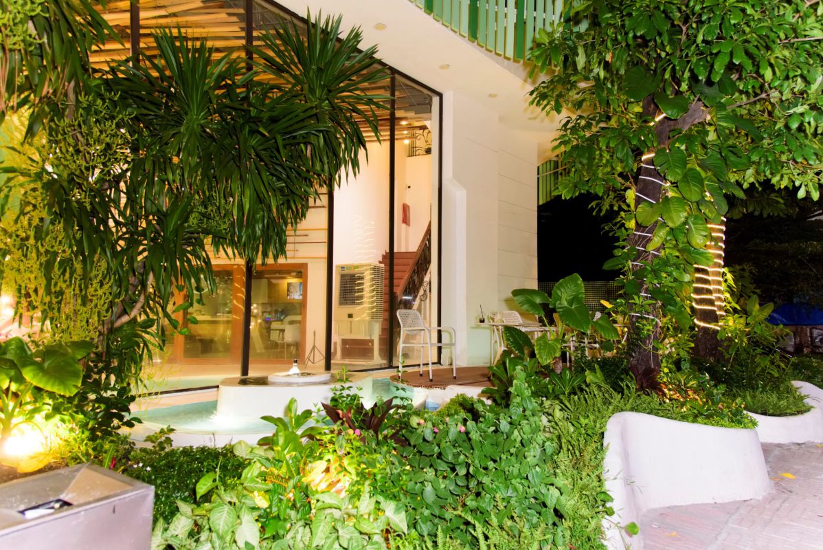 - Aqua Jardin, kết cấu trần cao, sử dụng các thanh gỗ thông thân thiện với môi trường, mặt tiền rộng hơn 35m, kiến trúc xanh, cảnh quan hồ nước v.v.v tất cả những yếu tố này tạo nên một không gian không phải lộng lẫy, không cổ kính, không phải nội thất đèn chùm và thảm, mà chúng tôi tạo nên một không gian thoáng đãng, tươi mới, thư giãn tràn ngập thiên nhiên đầy cảm xúc cho những ai tiếp cận.