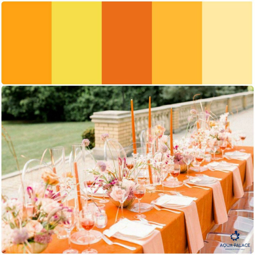 Sư Tử (23/7 – 22/8): Sắc cam rực rỡ là người bạn đồng hành với Sư Tử kiêu hãnh, nhiệt huyết trong tình yêu. Aqua Palace gợi ý kết hợp với một tone màu lạnh như xanh navy thì tiệc cưới của bạn sẽ cực kỳ nổi bật.