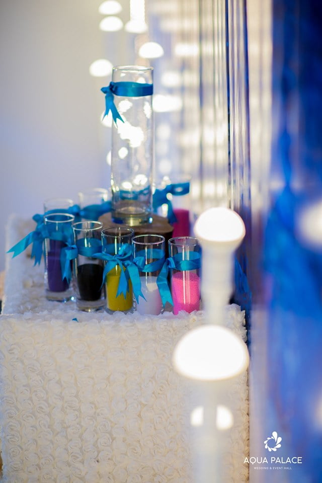 Sau khi tham khảo các concept cưới độc nhất chỉ có tại Aqua Palace như Bohemian Wedding, Night Sky Wedding, One Home Wedding, anh Vũ và chị Kim đã chọn Ocean Wedding làm phong cách trang trí chủ đạo trong tiệc báo hỷ. Phong cách trang trí Ocean Wedding phù hợp với câu chuyện của hai người: anh và em như con thuyền nhỏ giữa lòng đại dương, đương đầu với sóng gió và bão tố cuộc đời nhưng không hề khuất phục, âu cũng chỉ vì một chữ yêu.